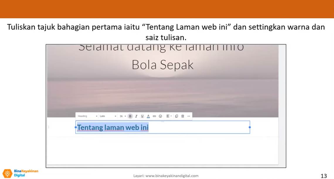 14 Februari 2024 - Hari ini telah berlangsung sebuah kelas yang istimewa buat para peserta Cybercamp Feb 2024 iaitu Kelas Cipta Laman Web Menggunakan Google Site. Google Site merupakan salah satu platform yang disediakan oleh Google untuk mencipta laman web dengan ringkas dan mudah. Menggunakan Google Site, pengguna mampu untuk mencipta sebuah laman web yang berinformasi dengan masa yang singkat.